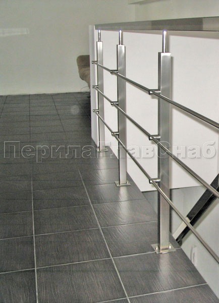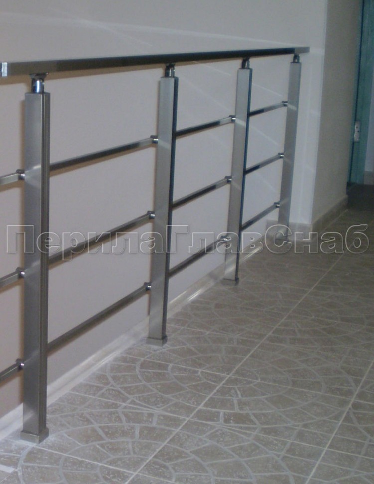 Четыре ригеля на держателях, квадратный поручень и квадратные стойки