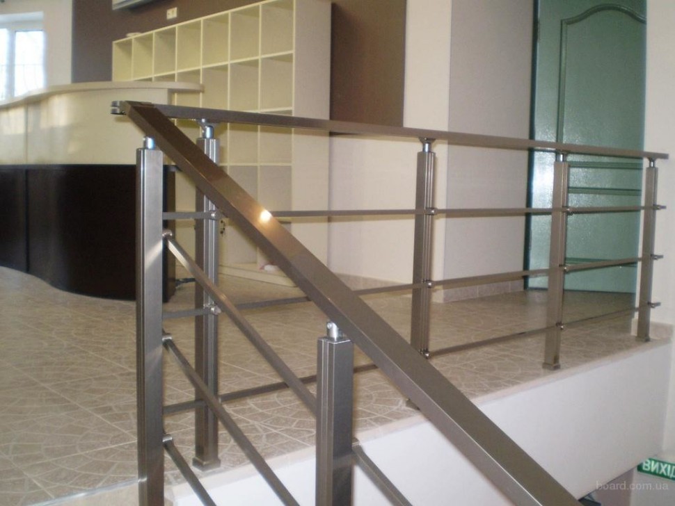 Четыре ригеля на сварке, круглый поручень и квадратные стойки
