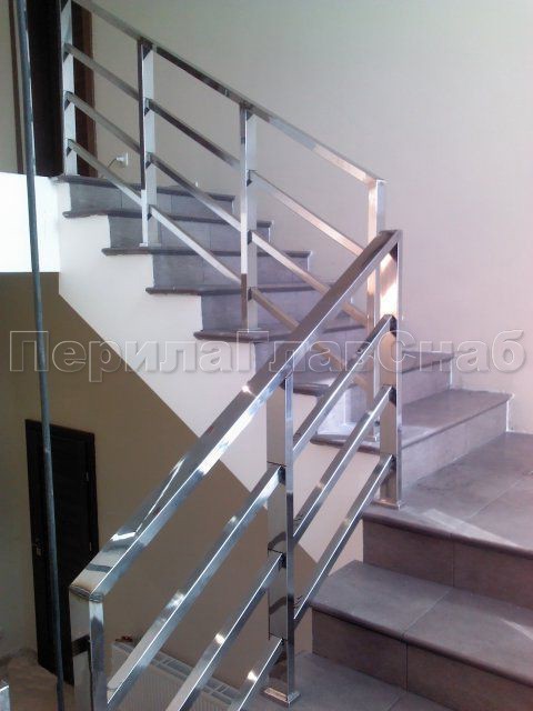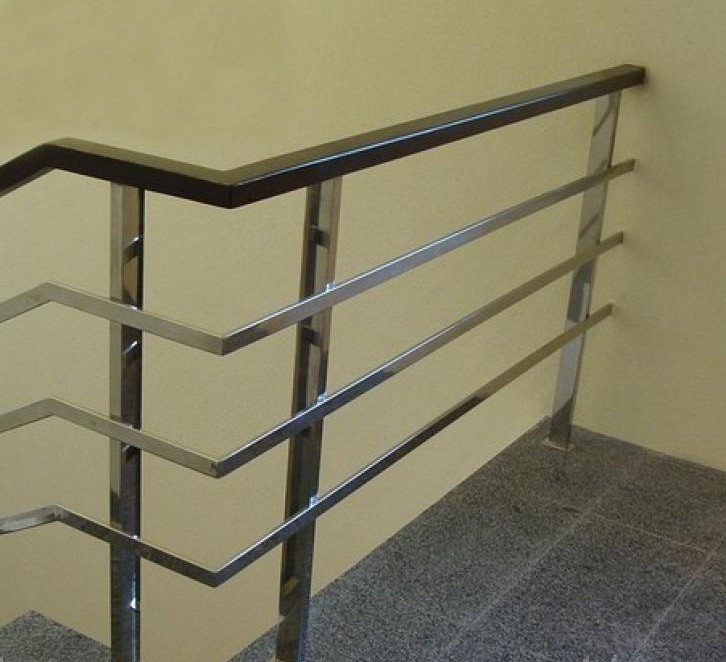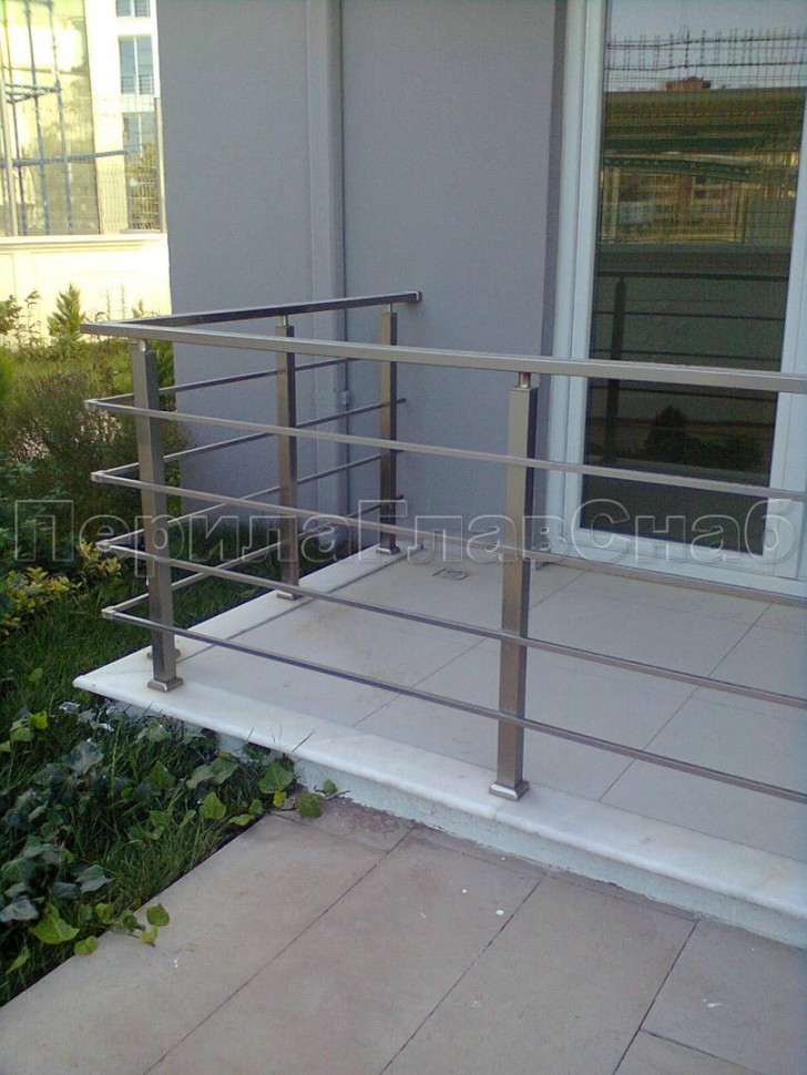 Записаться на встречу Три ригеля на сварке, квадратный поручень и круглые стойки