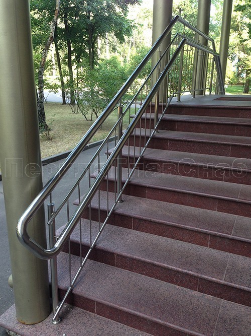 Нержавеющие ограждения для школ и детских садов с вертикальным заполнением “Частокол” - вариант №1 для крыльца