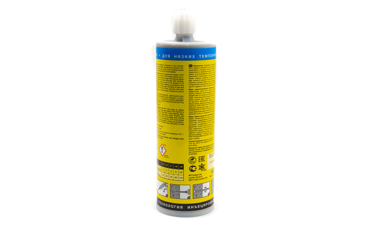 Высоко устойчив к агрессивным средам, кислотам и щелочам ; позволяет выполнять установку анкеров вблизи края конструкции