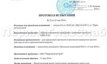 Испытания проводились для определения прочности и жесткости ограждений при воздействии на него горизонтальной нагрузки. Испытания проводи...
