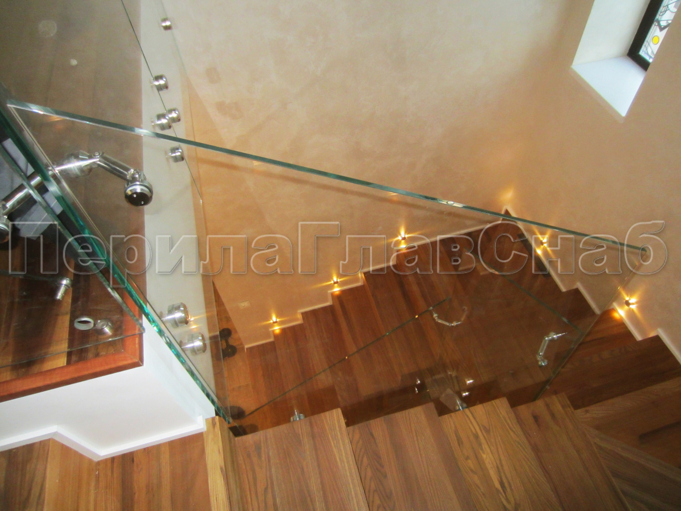 Стеклянные перила для лестничных маршей в подмосковном коттедже.