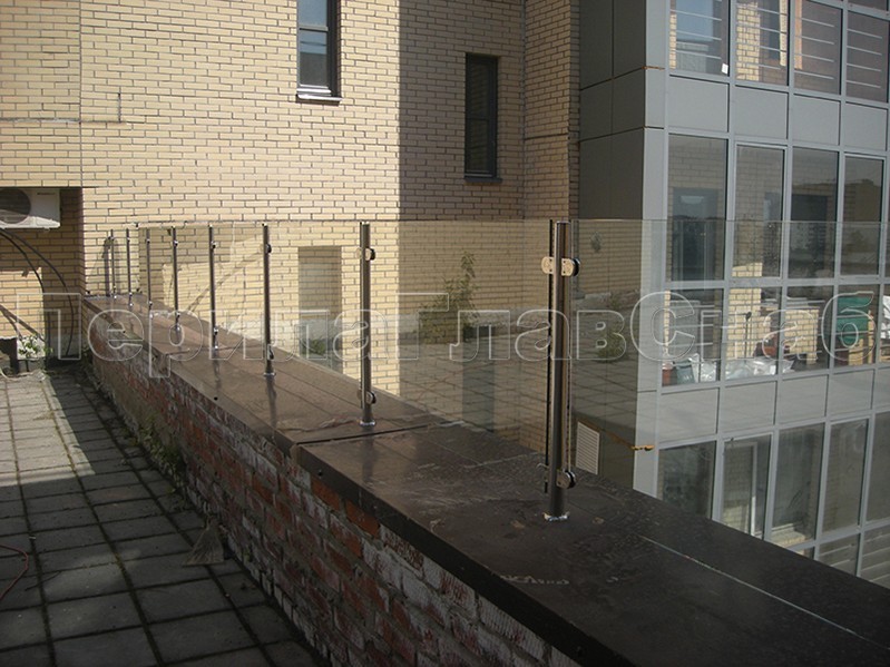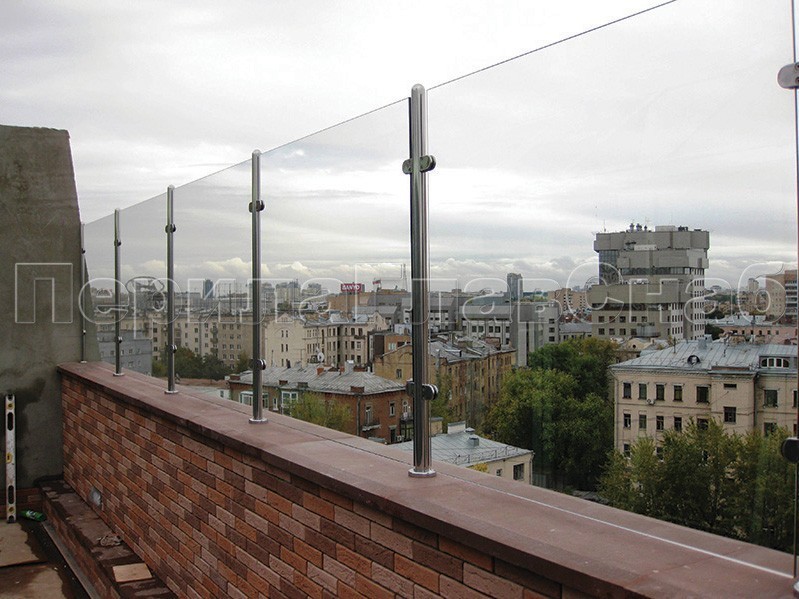 Ограждение для кровли на несущем стекле и министойках