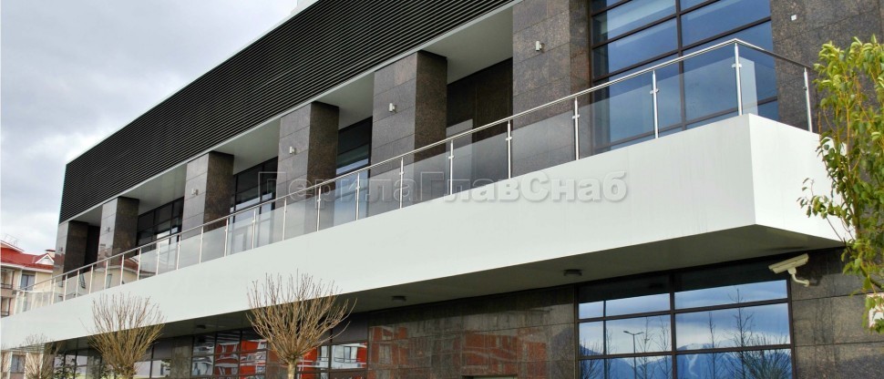 Ограждение кровли на несущем стекле и алюминиевом профиле