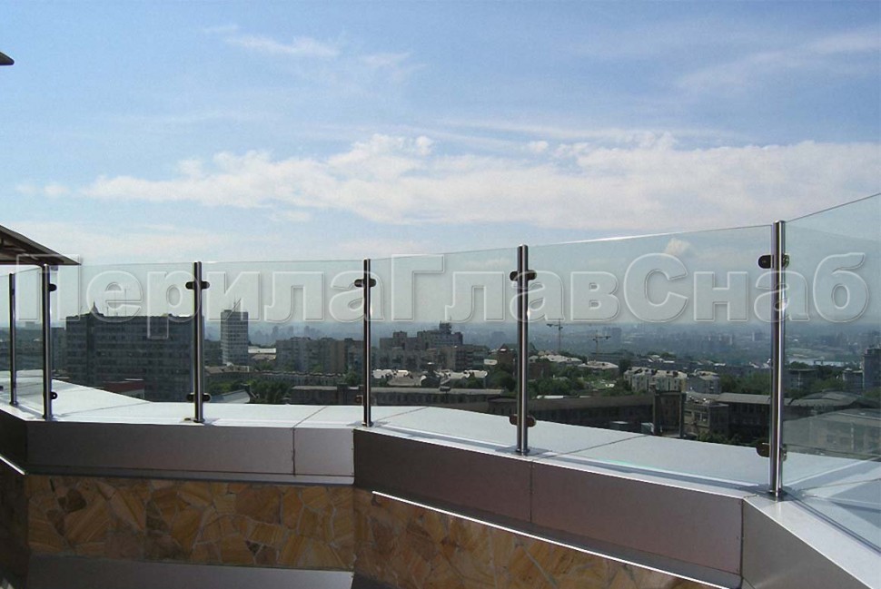Ограждение на несущем стекле с торцевым креплением для крыш