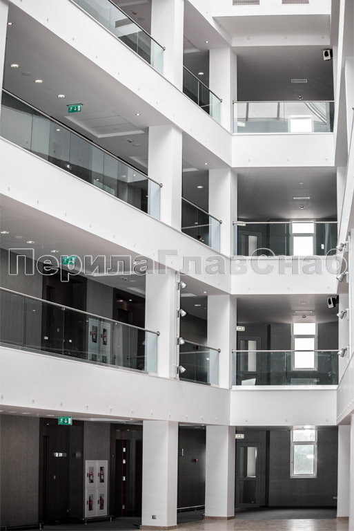 Стеклянные перила в атриум бизнес-центра.