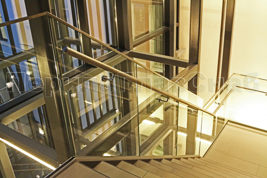 Ограждения лестниц на несущем стекле с подсветкой в Екатеринбурге. Готовые проекты ПерилаГлавСнаб - фото 1 Ограждения лестниц на несущем стекле с подсветкой в Екатеринбурге. Готовые проекты ПерилаГлавСнаб - фото 2