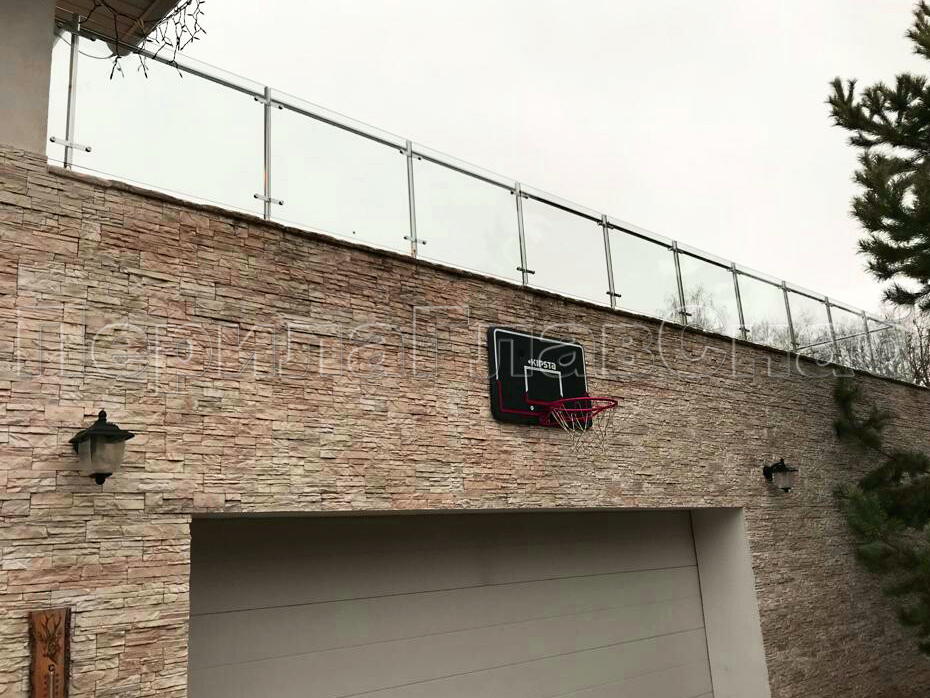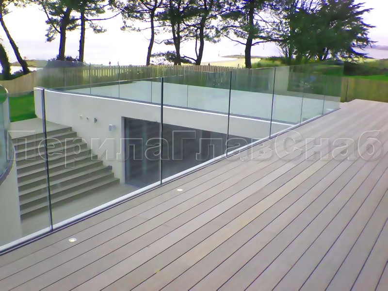 Стеклянные перила на несущем стекле на улице (для приусадебного участка)