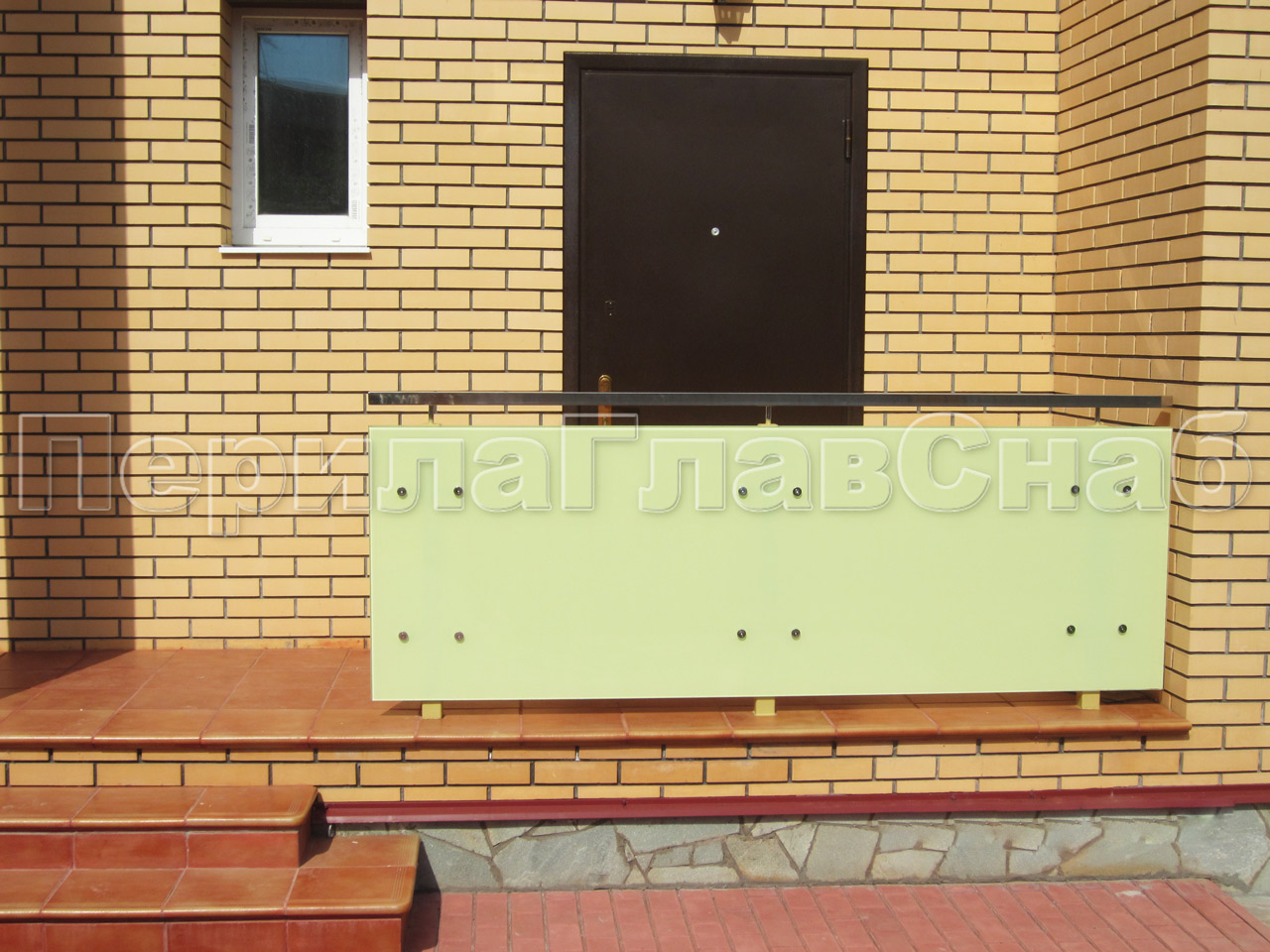 Цельностеклянное ограждение на зажимном алюминиевом профиле для крыльца в Екатеринбурге. Готовые проекты ПерилаГлавСнаб