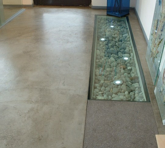 Стеклянное перекрытие из матового стекла на внутреннем балконе
