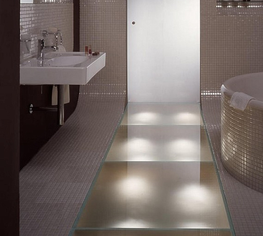 Стеклянные полы в ванной