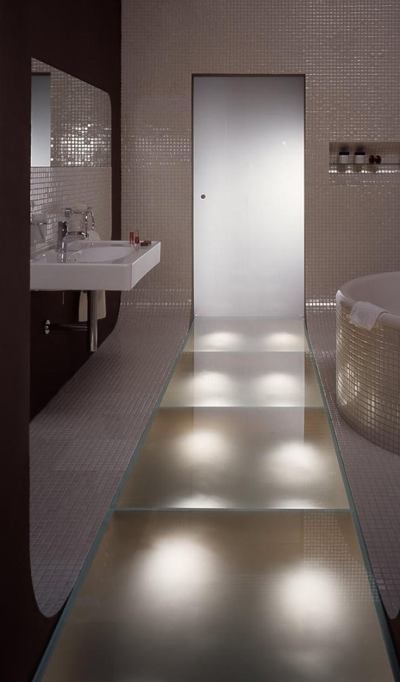 Стеклянные полы в ванной