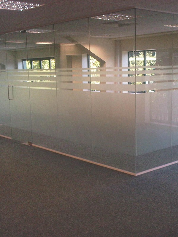 Стеклянные перегородки в офисе с закаткой пленки